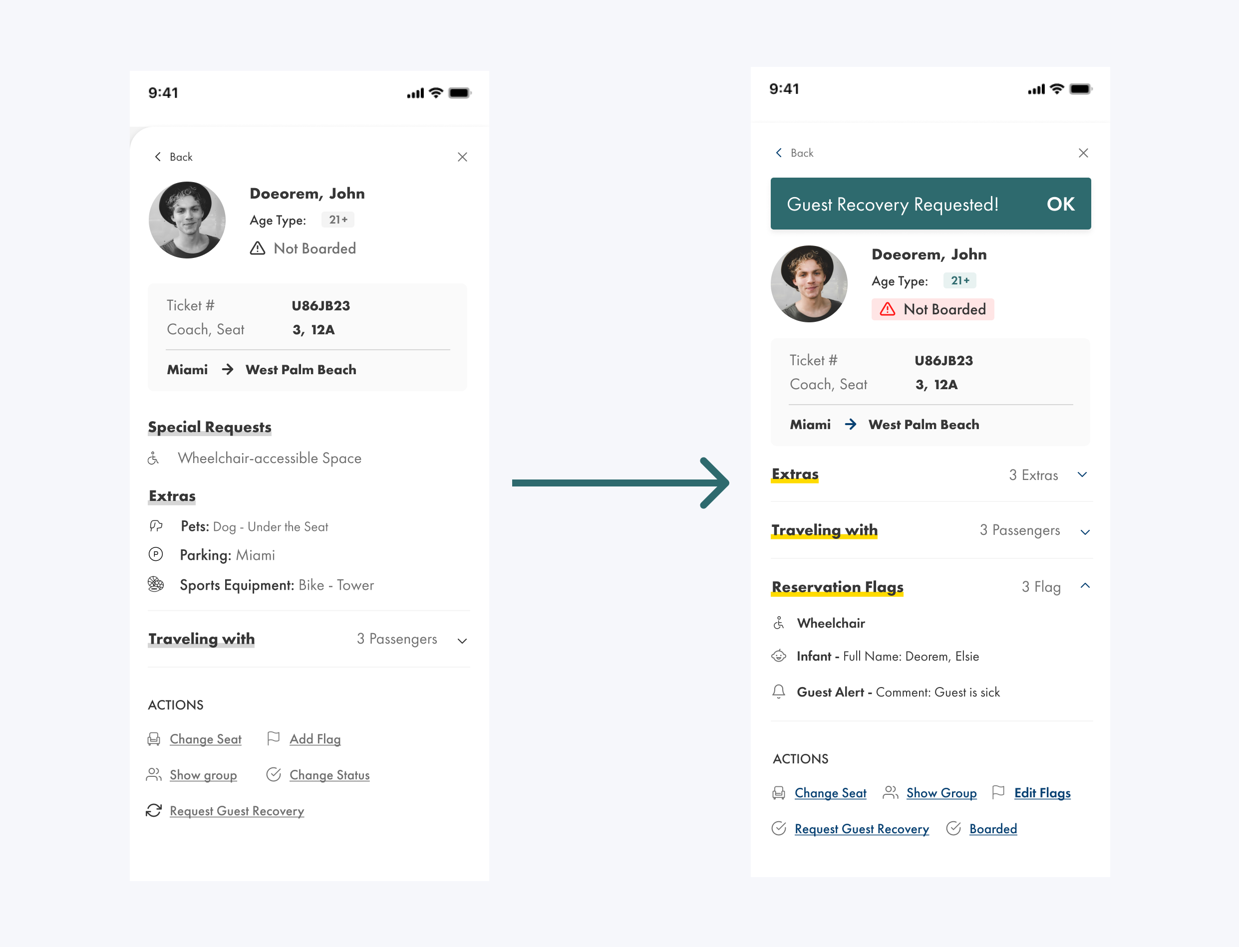• Train attendants need to have tools like: Add different passenger flags like a wheelchair, infants, firearm onboard; the exact location of passengers to make upgrades or changes.