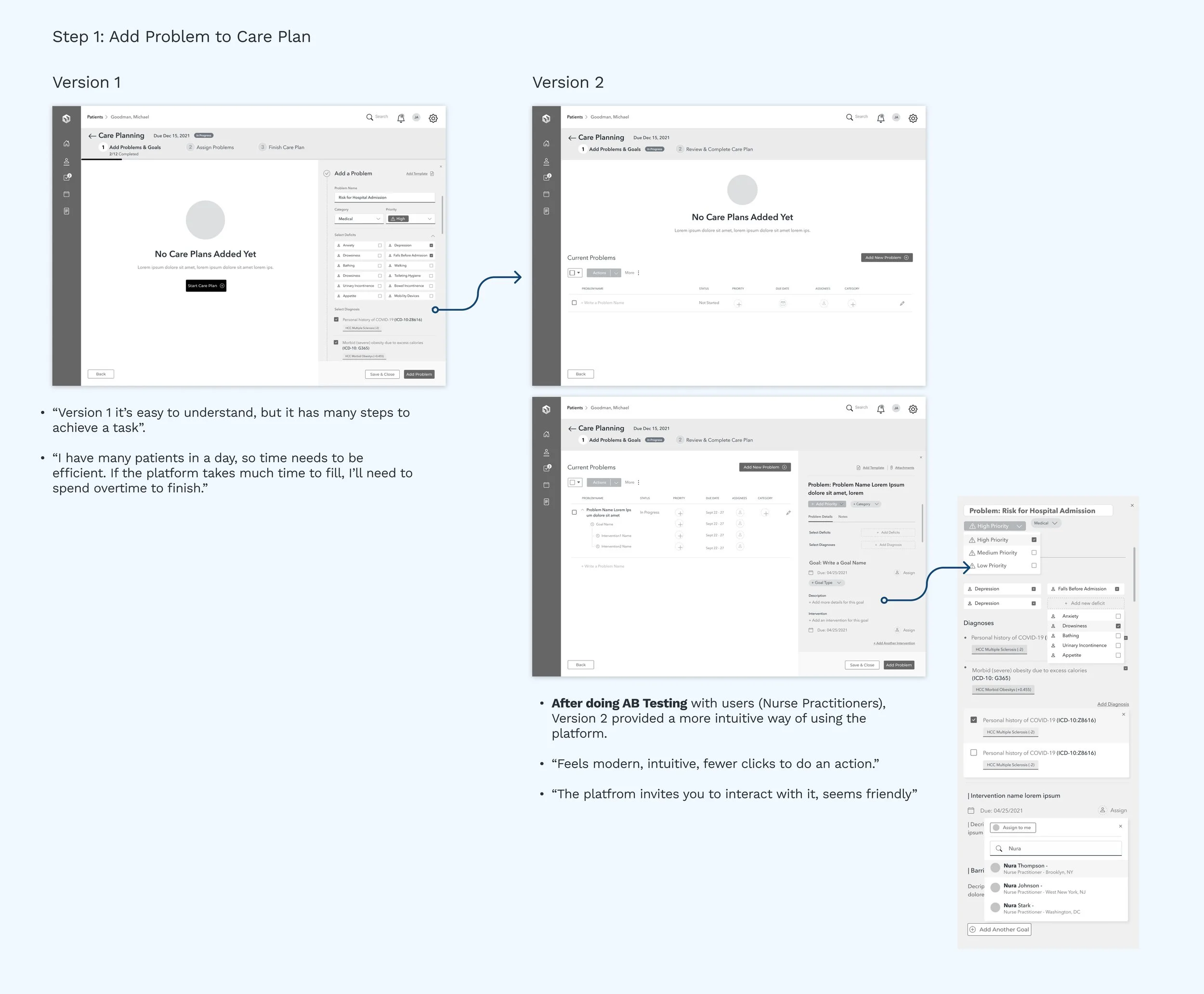 Week by week, in an agile methodology and brainstorming/collaboration sessions with Patient Pattern and real users, we started to create the new wireframes of the platform, adding all the recommendations we provided in the UX Audit and all the learnings from different documents.