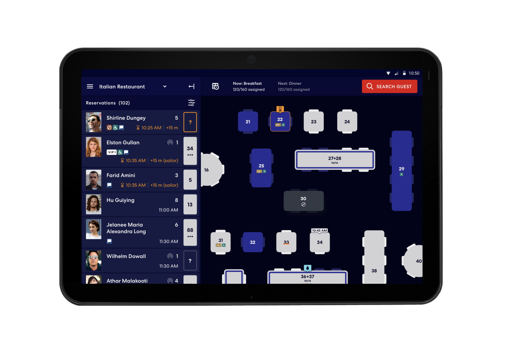 First, see the total number of guests served since they need to report this number to managers during the shift.